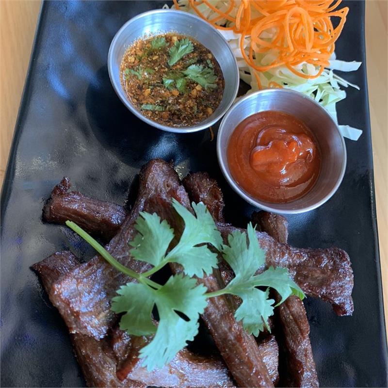 | Deep-fried marinated beef in authentic Thai-style served with sriracha and jaew dipping sauce | ||