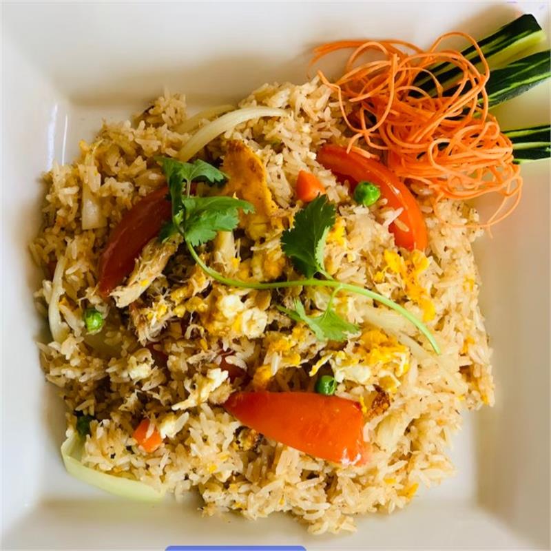 | ($22.00/person, minimum of 3) Jasmine rice, crab meat, cage-free eggs, white onions, cherry tomatoes, pea and carrot | ||