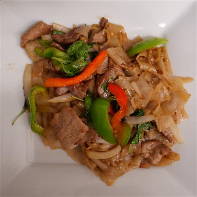 | ($18.00/person, minimum of 3) Stir-fried flat rice noodles, onions, bell peppers, and sweet basil. | ||