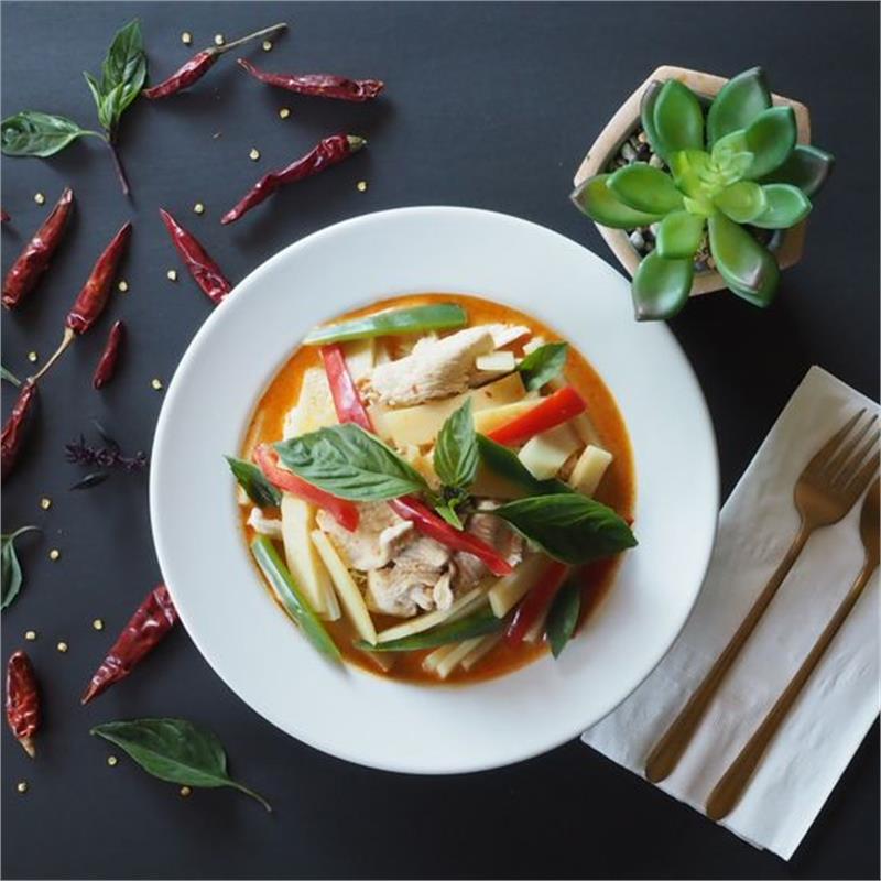 | ($18.00/person, minimum of 3) Green bean, fresh garlic, bell peppers, and kaffir lime leaves | ||
