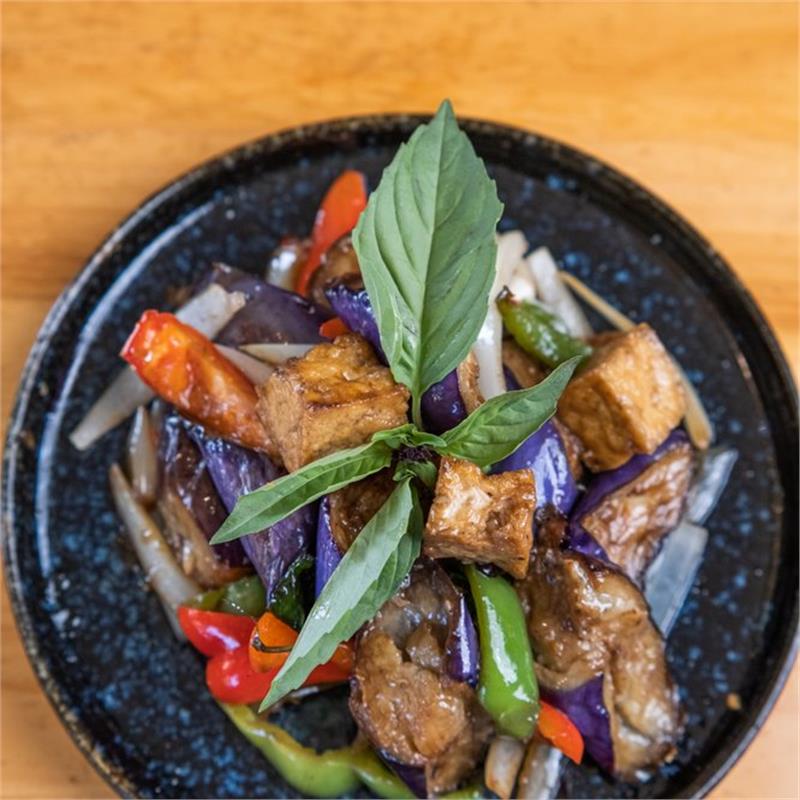 | ($18.00/person, minimum of 3) Chinese eggplant stir-fried with onion, bell pepper, basil sautéed with house garlic sauce | ||