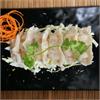| Dumplings stuffed with chicken and veggies, cabbage, spinach and carrot topped with green onions, cilantro and house garlic oil | ||