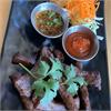 | Grilled rib eye steak marinade in authentic thai sauce served with jaew dipping sauce. | ||