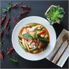 | Chiang-Mai creamy curry egg noodles soup in Northern Thai style topped with pickled mustard greens, red onions, green onions, cilantro and crunchy egg noodles fried crisp | ||