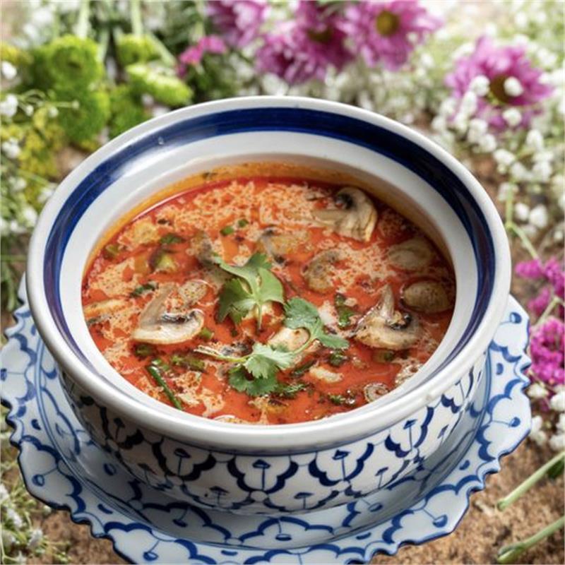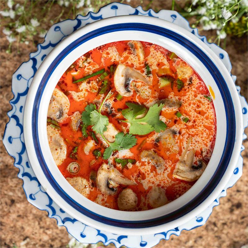 | Thai spicy coconut lemongrass soup with mushroom, chili, lime juice, and galangal. | ||