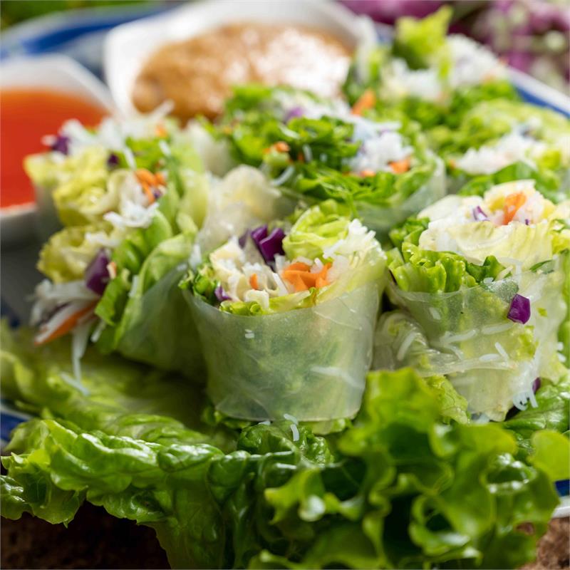 | Fresh vegetables rice noodles wrapped with thin rice paper; served with sweet & sour sauce and peanut sauce. | ||
