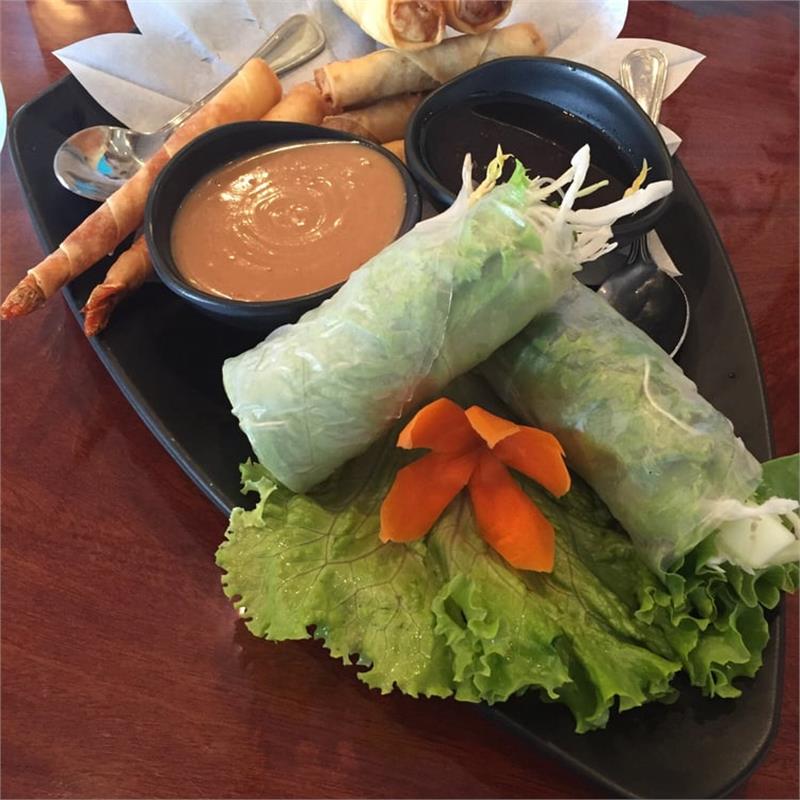 | Egg rolls (2), Cream cheese wonton (2), Fresh veggies spring rolls (2), and Boston shrimps (2) | ||