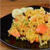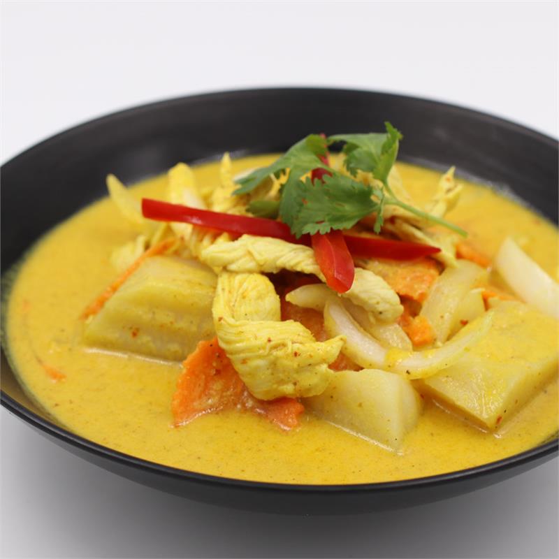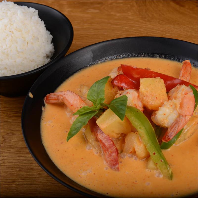 | Shrimp in coconut milk and red curry sauce with green bean and carrot. | ||