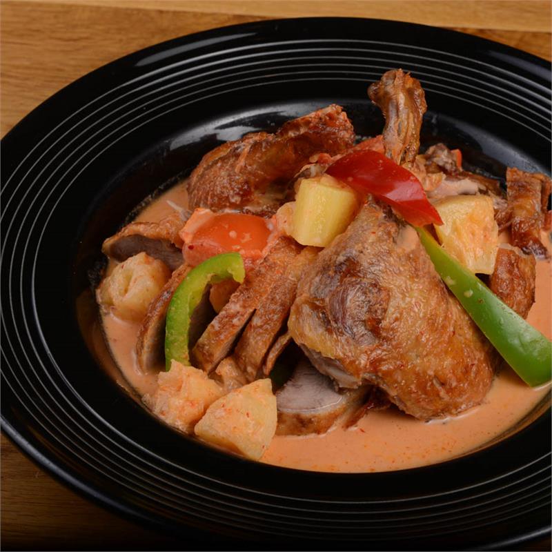 | Kabocha(Japanese),basil, red and green bell pepper in red curry sauce. | ||