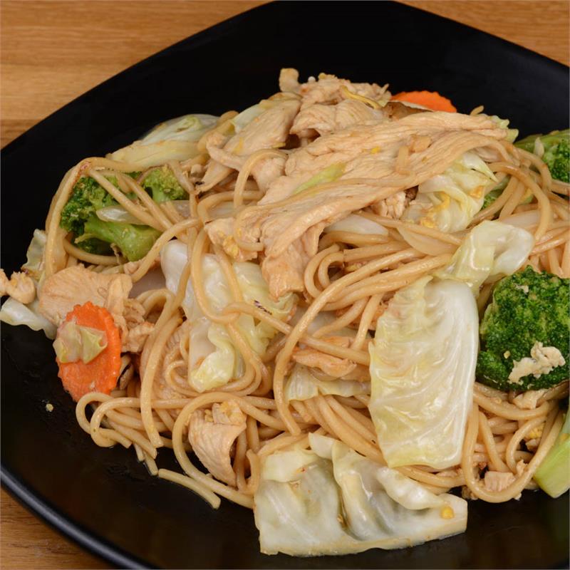 | Wok fried umami flavored bean thead noodles with egg, broccoli, carrot, cabbage, bamboo shoots, onions, straw mushroom, celery, and bean sprouts. | ||