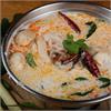 | A unique "world famous Thai soup" with fresh mushroom, tomato, onions and a touch of authentic Thai spices: lemongrass, kaffir lime leaves topped with cilantro and green onions. | ||