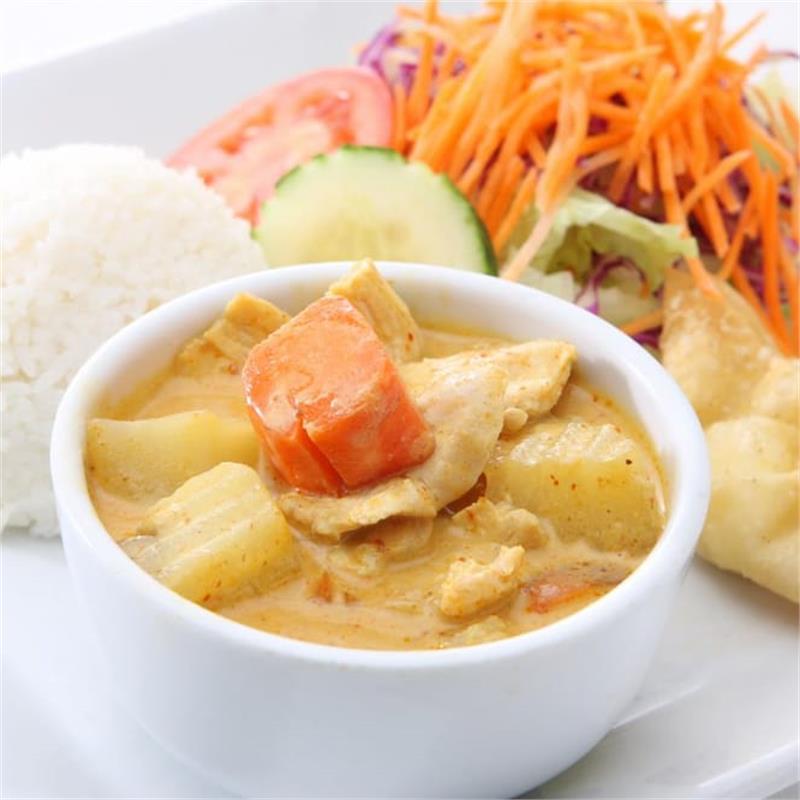 | Thai classic curry with coconut milk, onion, peanut, and potatoes. | ||
