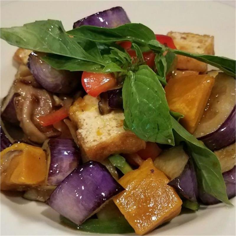 | Green beans, baby corn, mushroom, onion, bell pepper whit Thai chili and sweet basil | ||