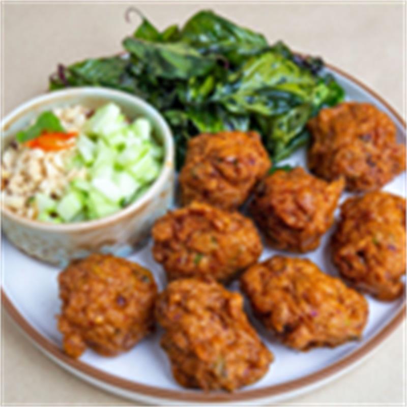 | Fried fish cake, served with sweet and sour cucumber salad, topped with crushed peanuts | ||