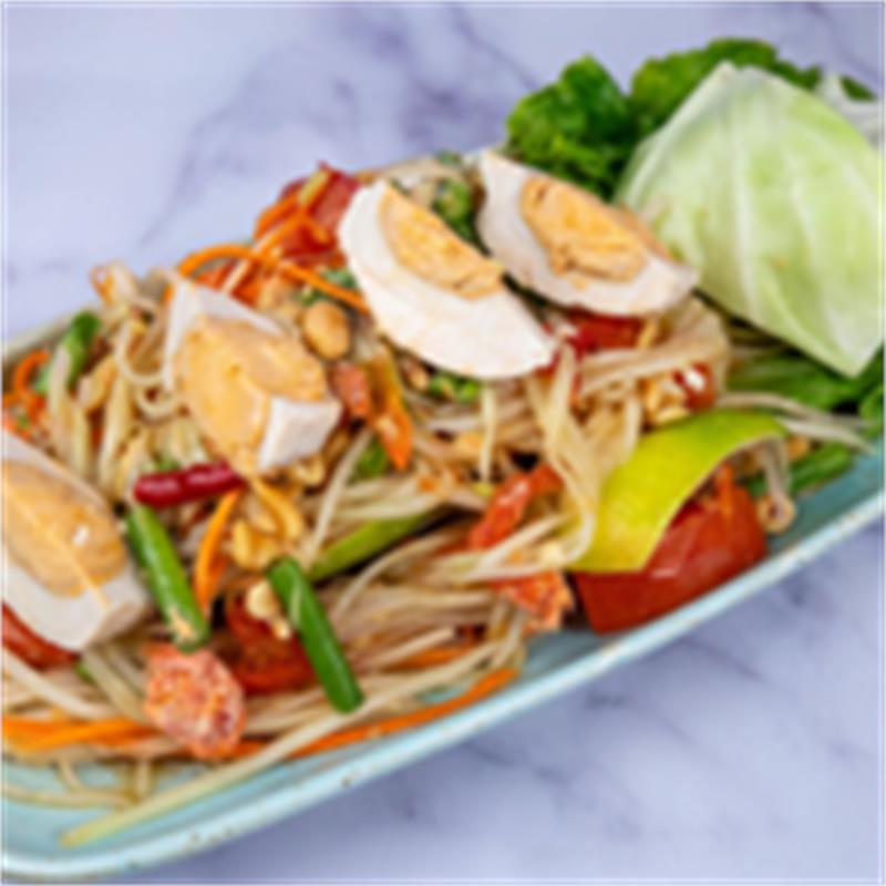 | Shredded green papaya, tomato, yard long beans, dried shrimp, peanuts, and salted egg | ||