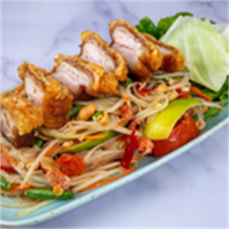 Papaya Salad With Crispy Pork / ส้มตำ + หมูกรอบ