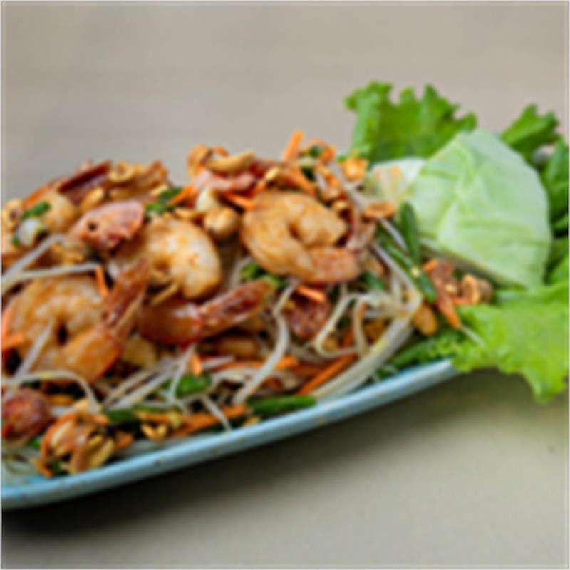 | Shredded green papaya, tomato, yard long beans, dried shrimp, and peanuts | ||