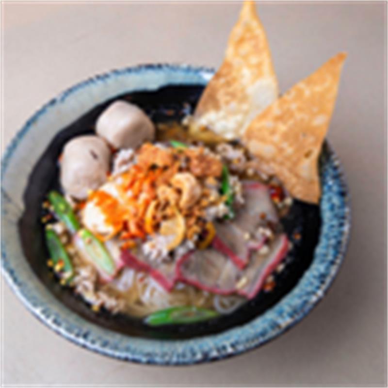 | Ground pork, sliced BBQ pork, meatball, dried shrimp, pork liver, and peanuts in a bright aromatic broth, served with fried wontons | ||