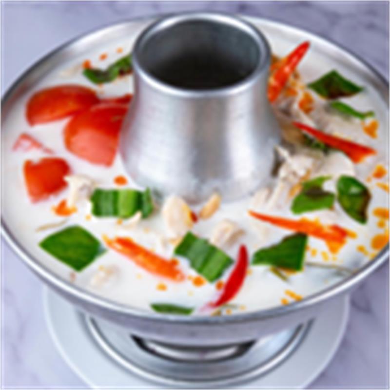 | Coconut milk, galangal, lemongrass, kaffir lime leaves, lime, chili, tomato, and mushroom | ||