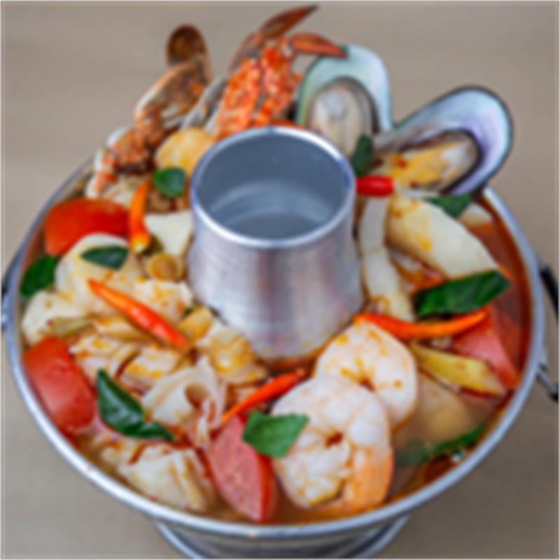 | Galangal, lemongrass, lime, chili, tomato, and mixed seafood | ||