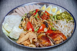 | Shredded green papaya, tomato, yard long beans, dried shrimp, peanuts, and crispy pork | ||