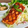 | Marinated chicken in our special Thai herbs mix, lemongrass marinade. Grilled to perfection and served with our Thai sweet BBQ chili sauce. (Half chicken/ does not come with rice) | ||