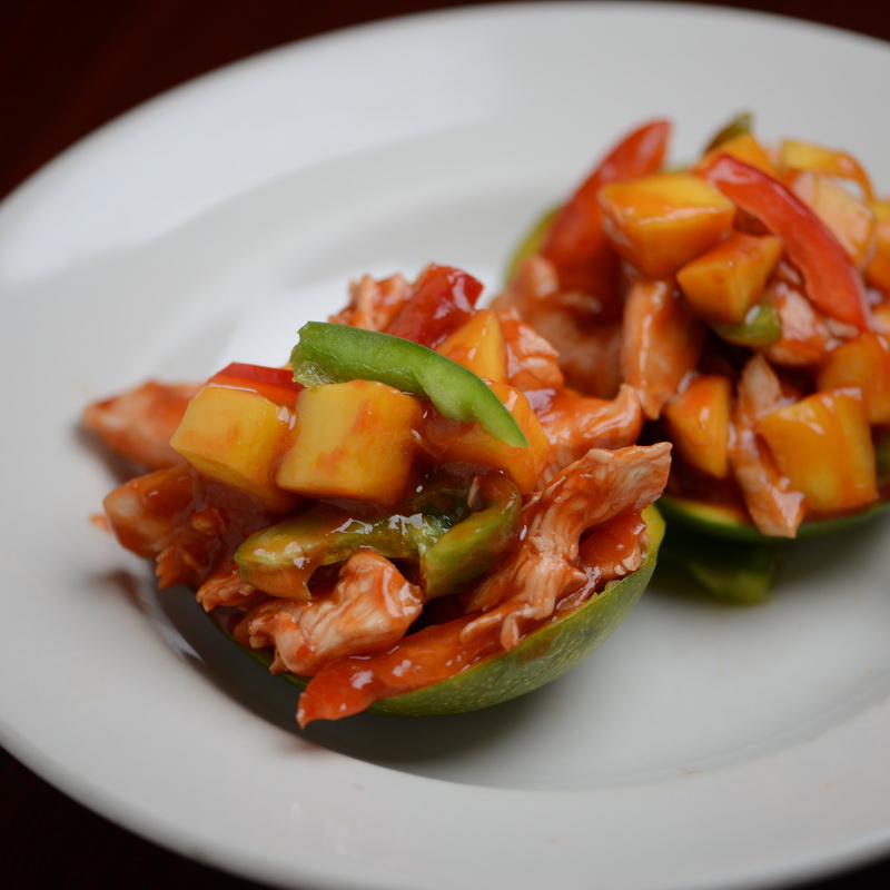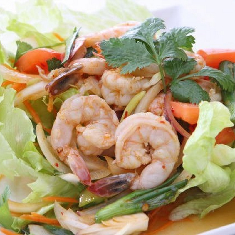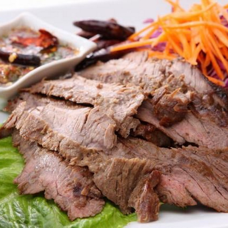 Grinlled on skewers. Served with peanut and cucumber salad.