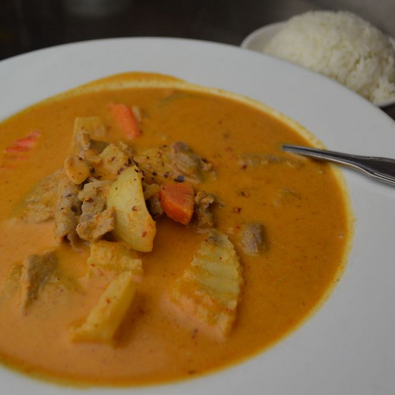 --- Turmeric yellow powder cooked in coconut milk, cubed potatoed and carrot