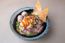 Noodles, tamarind, egg, tofu, dried shrimp, shallots, sweet radish, chives, and bean sprouts, served with crushed peanuts and lime