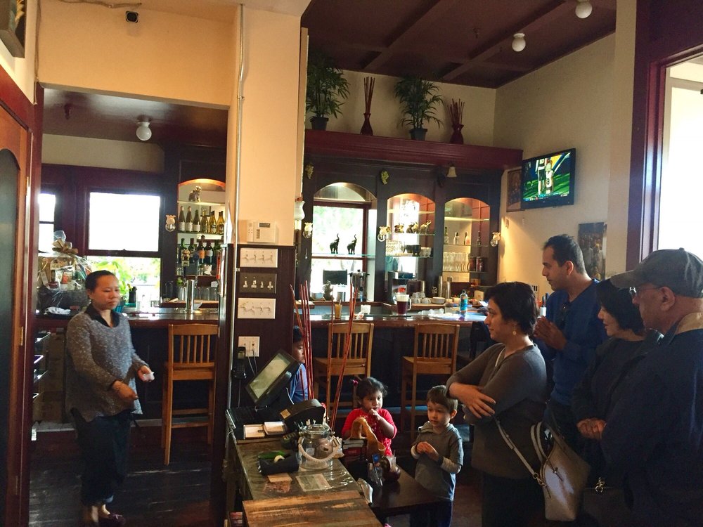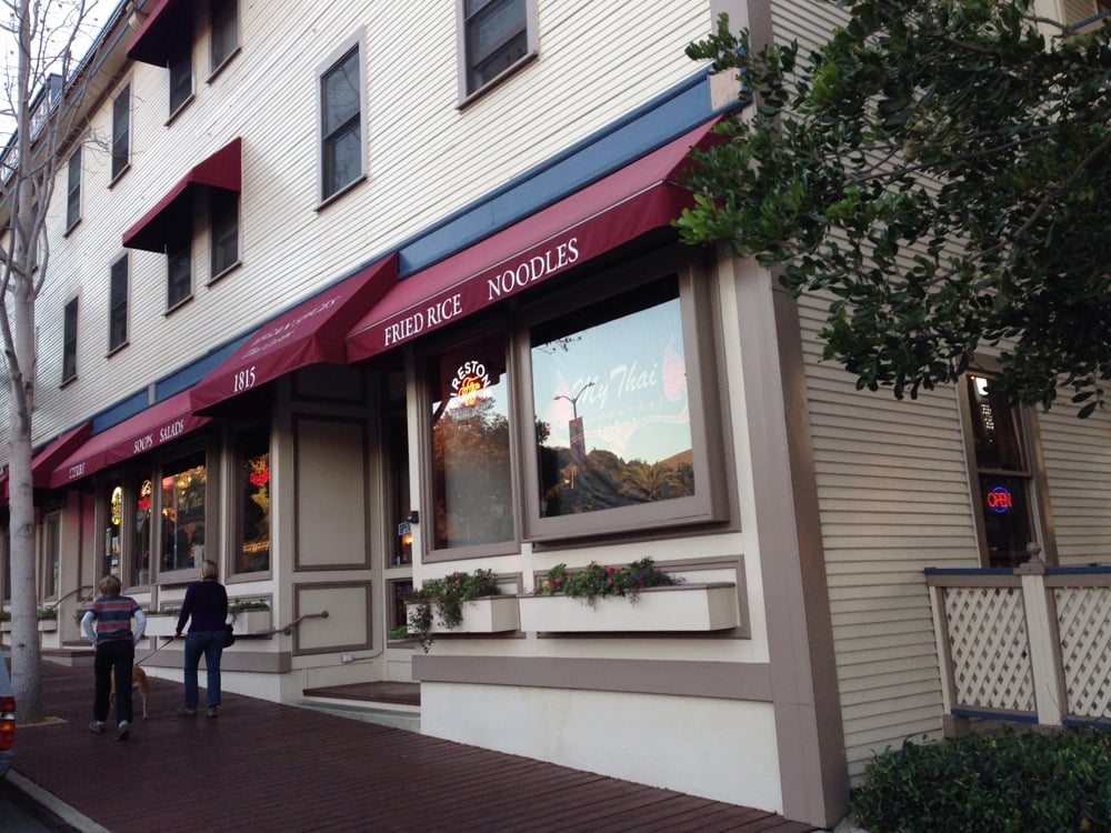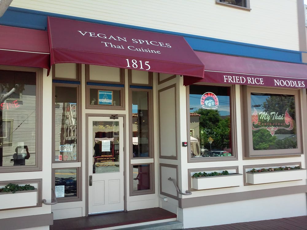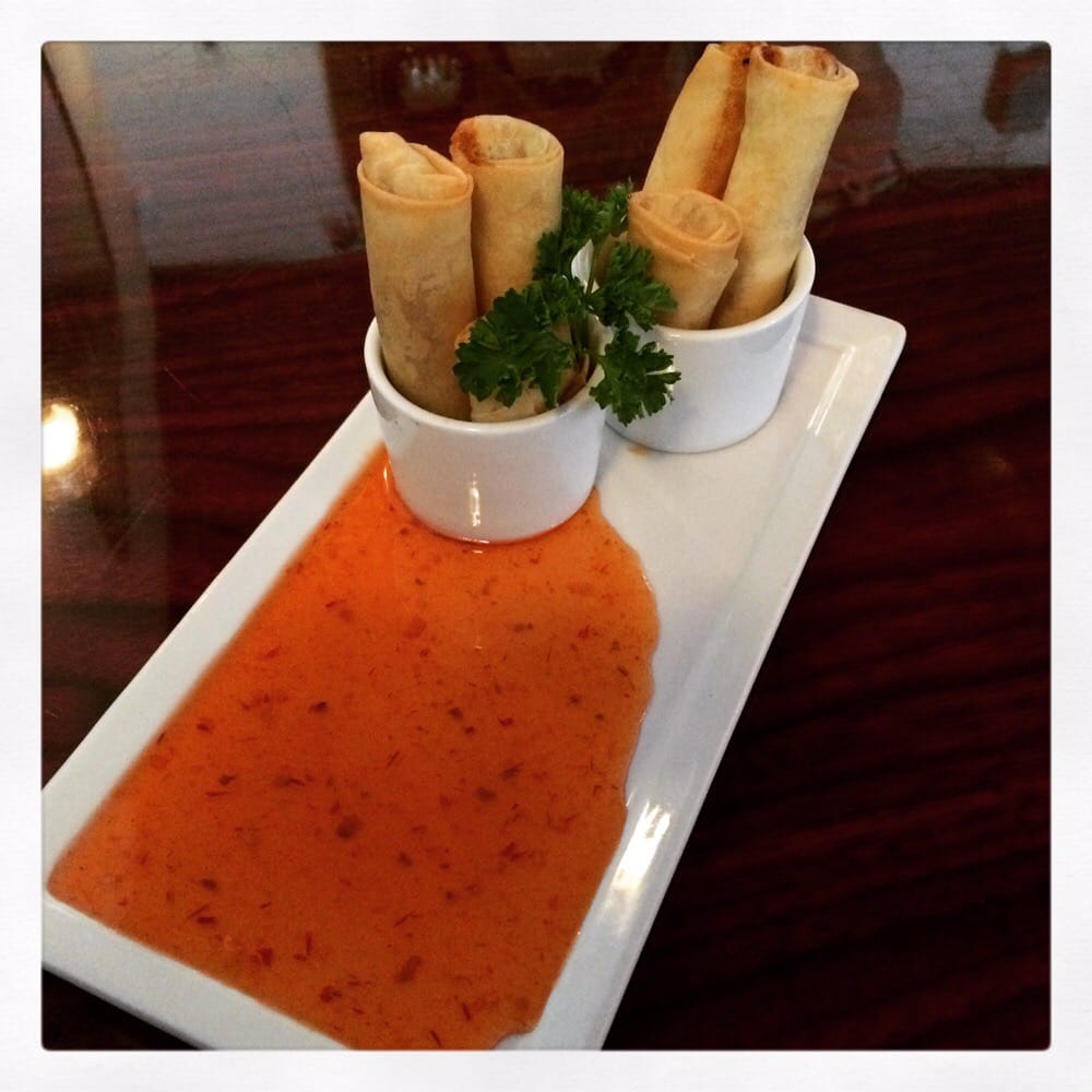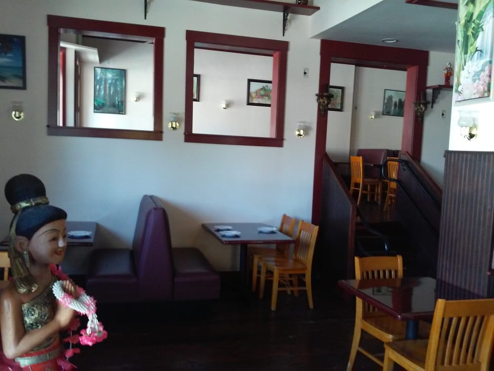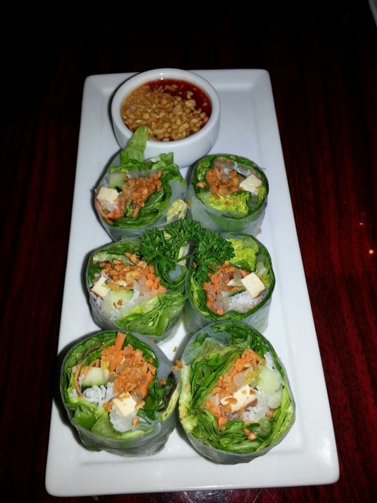 Flat noodles with basil and bell pepper in a spicy chili garlic sauce.